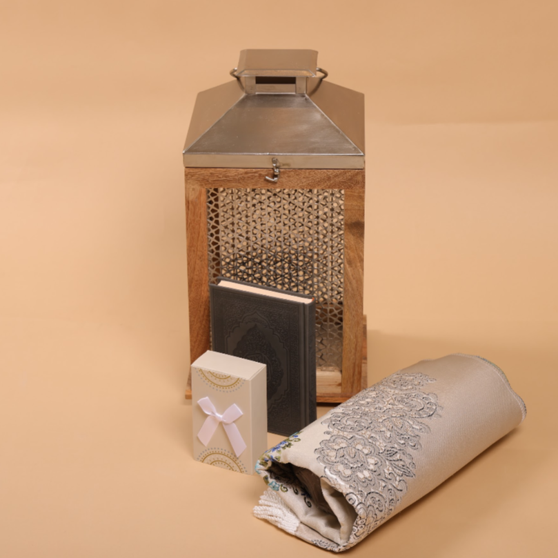 فانوس كبير يحتوي على طقم سجادة وشرشف طرحة رمادي