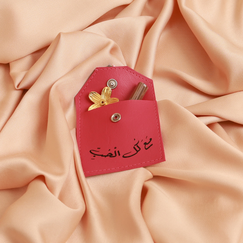 محفظة جلد بعبارة ( مع كل الحب ) مع اكسسوار