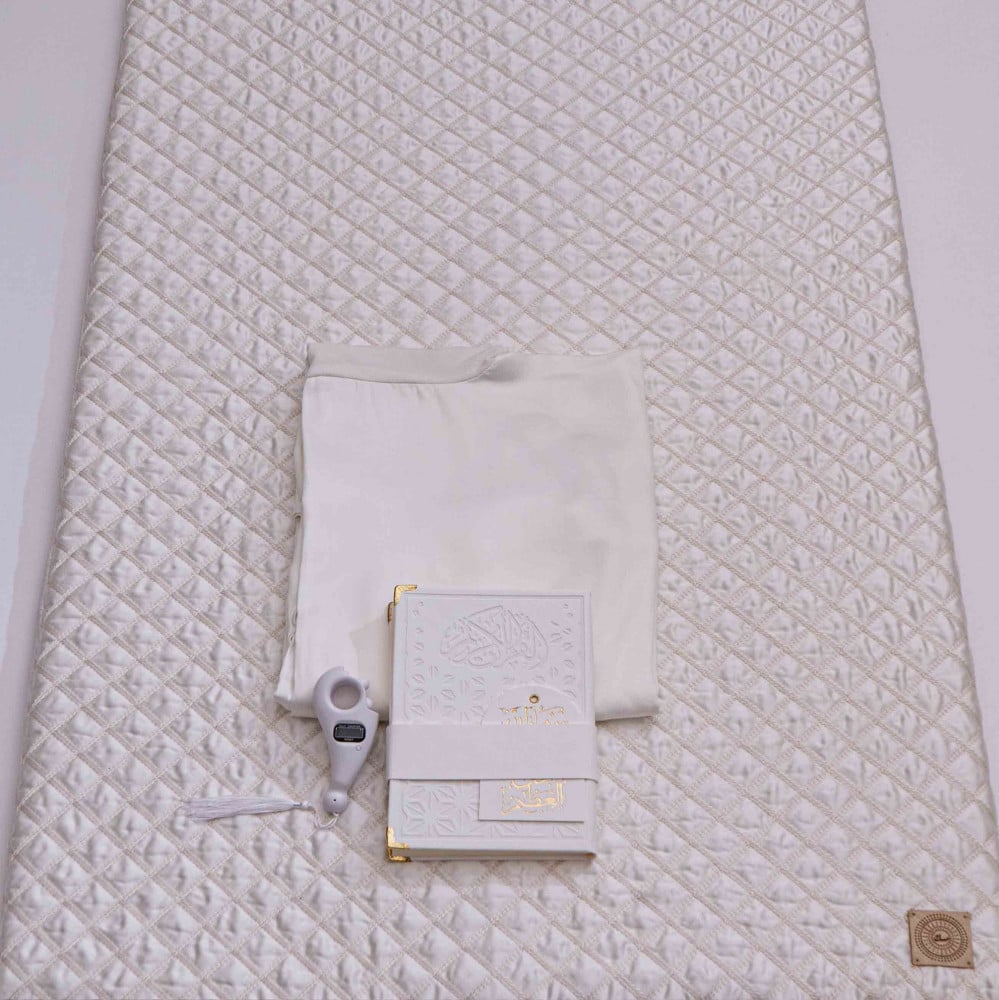 صمم هذا الطقم من سجادة من قماش الستان بملمسه الناعم المبطن بالقطن وبالوانها الهادئه وتفاصيلها بالخطوط الغائره بالإضافة الى شرشف بقماش قطن مضاف اليه مواد طبيعيه.. استرتش على الرأس واليدين، يتميز بانه بارد ومريح .