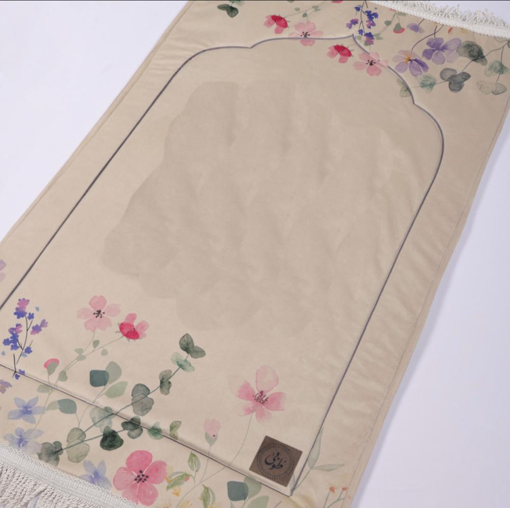 سجادة من قماش مخمل ناعم بطباعة زخارف يتفرد بهدوء الوانه وتفاصيله البسيطة .